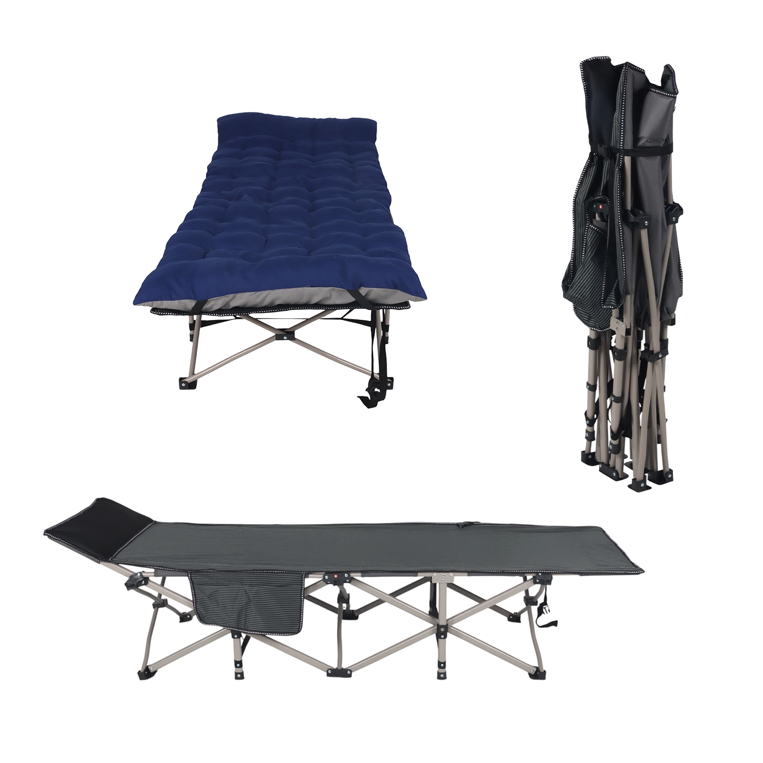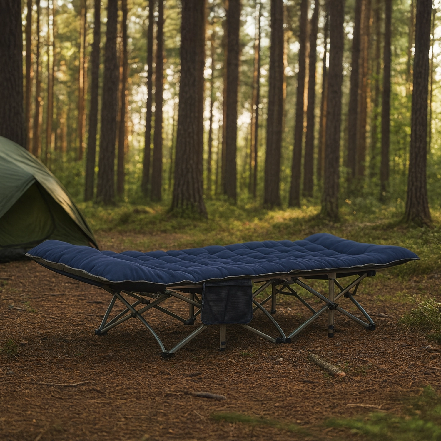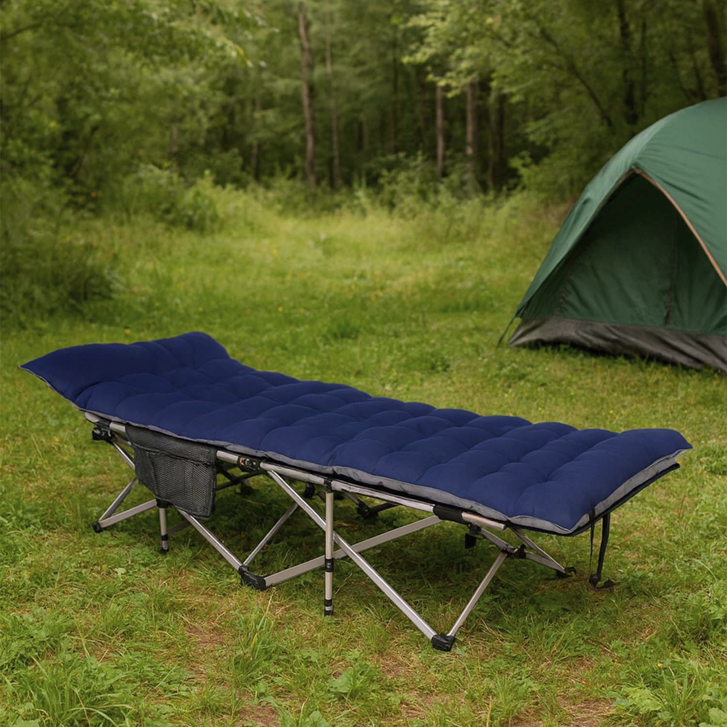 Su diseño robusto y portátil la hace ideal para campamentos, viajes, picnics o como cama auxiliar en casa.