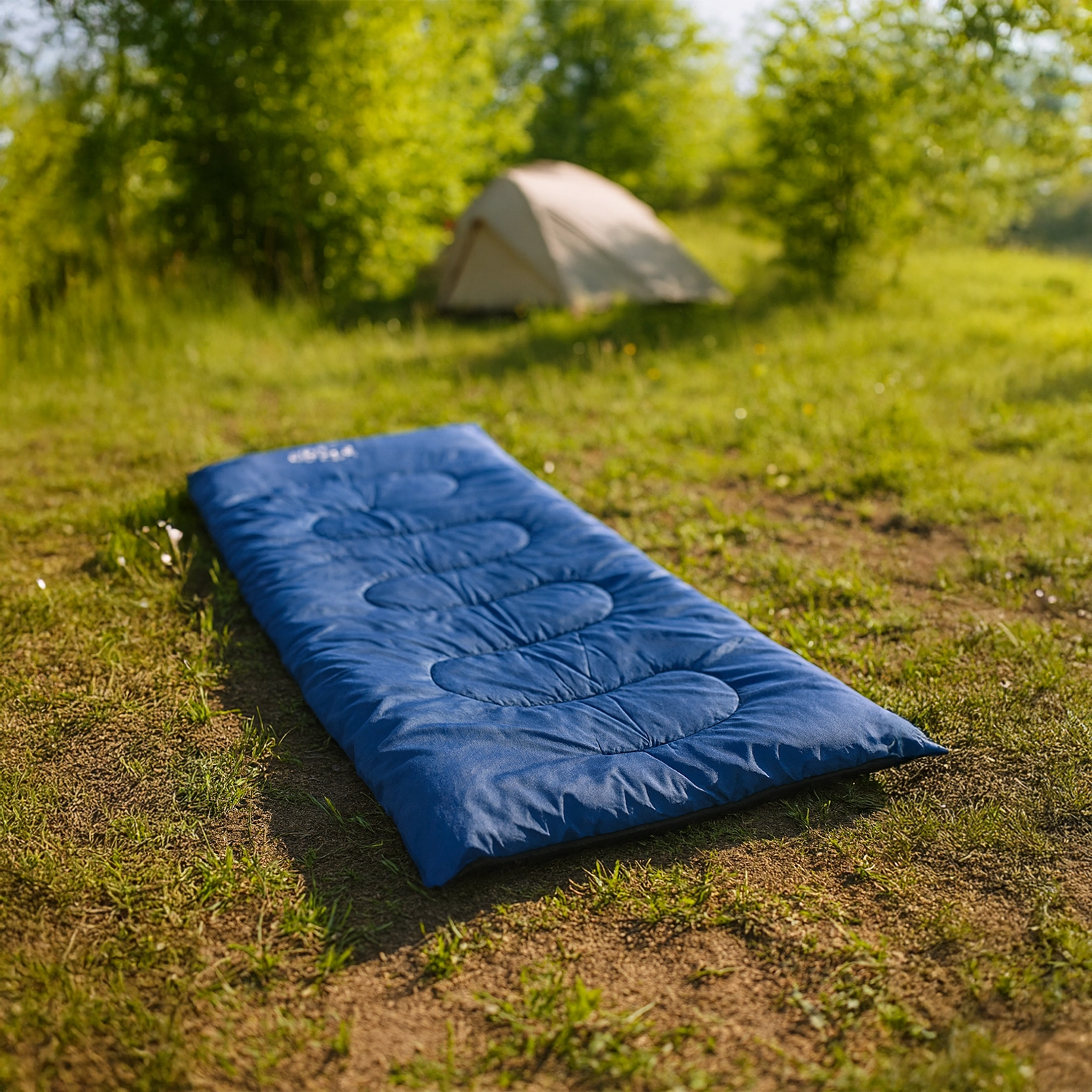 El Saco de Dormir 250 gr Azul es una opción ligera, práctica y cómoda para tus aventuras al aire libre en verano y otoño. Su diseño rectangular brinda mayor amplitud y libertad de movimiento, ideal para quienes prefieren un descanso sin restricciones.